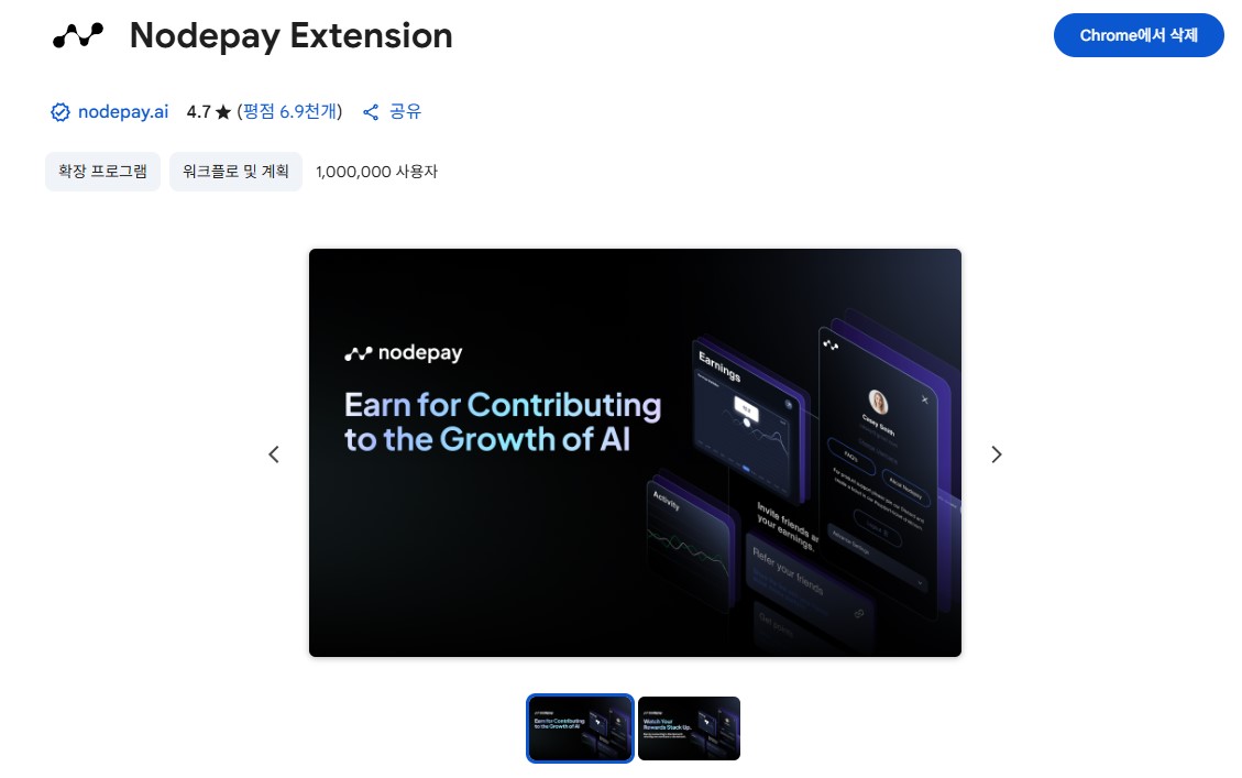 - 웹스토어에서 'NodePay'를 검색해서 공식 확장 프로그램을 설치하세요.